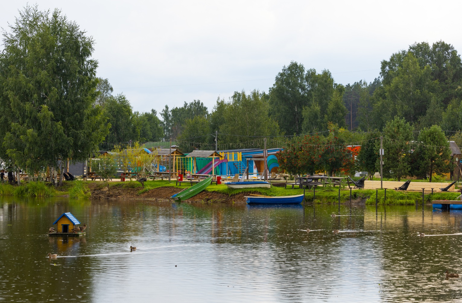На удобных скамейках-качелях так комфортно читать книжку и наслаждаться солнышком, пока ребенок играет на площадке. Для юных «мичуринцев» здесь раздолье: паутинки, прыгунки, качели, карусели, горки, лабиринты – интересно будет как малышам, так и ребятам постарше.